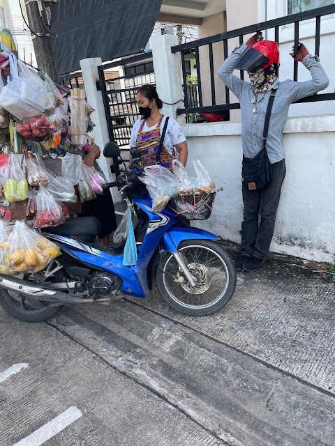 A motorbike with fruit and vegetables (Ramkhamhaeng 76) September 12, 2023 Get link Facebook X Pinterest Email Other Apps Whilst I was having my coffee at the top of the Soi a motorbike stopped and he was full of fruits and vegetables!How much more can he get on?Is there a limit?The coffee lady went over and purchased some things. Comments